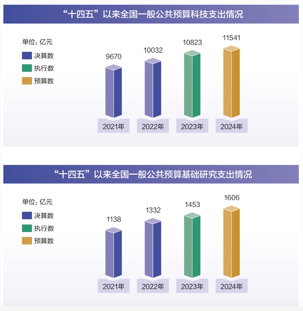 堅持把科技作為財政支出重點領域。2021年至2023年,累計安排全國財政科技支出3萬億元。今年,全國一般公共預算科技支出及基礎研究支出規(guī)模將進一步增長。