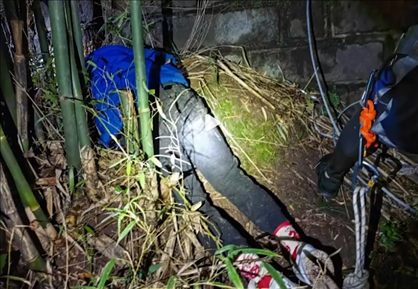 ·重慶一男子堵車(chē)尿急翻高速欄桿墜崖,所幸在一處陡坡被竹林絆住,最終被成功救上路面。