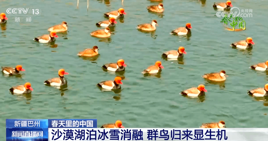 伴隨著陣陣鳥鳴,我們來到新疆巴州尉犁縣羅布淖爾國家濕地公園,碧綠的水面上,成群結(jié)隊(duì)的赤嘴潛鴨、赤麻鴨等鳥類時(shí)而用翅膀拍打水面展翅飛翔,時(shí)而三五成群在水中喜戲、覓食,群鳥與黃沙、碧水、葦叢、胡楊交相輝映,形成一幅生機(jī)勃勃的春日畫卷。