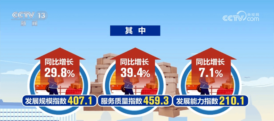央視網(wǎng)消息:3月15日,國家郵政局發(fā)布2024年1—2月中國快遞發(fā)展指數(shù)報告,1—2月中國快遞發(fā)展指數(shù)同比提升26.7%??爝f發(fā)展指數(shù)評價采用指數(shù)評價方法,以2016年3月為基期,基期值設(shè)定為100。整個指標(biāo)體系包括發(fā)展規(guī)模、服務(wù)質(zhì)量、發(fā)展能力和發(fā)展趨勢等4個一級指標(biāo)和11個二級指標(biāo)。指數(shù)反映出,今年1—2月,快遞業(yè)實現(xiàn)良好開局,市場規(guī)模快速增長。
