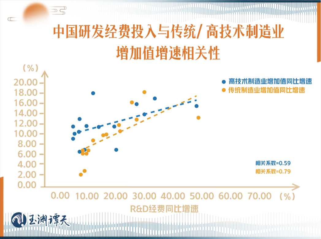 在中國,對于傳統(tǒng)產(chǎn)業(yè)而言,研發(fā)經(jīng)費投入對增長的貢獻,反而更容易顯現(xiàn)。