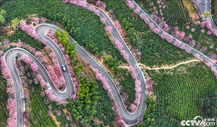 陜西省安康市平利縣長(zhǎng)安鎮(zhèn)通往洪福茶山的 “之”字型道路兩旁春梅盛開,美不勝收。