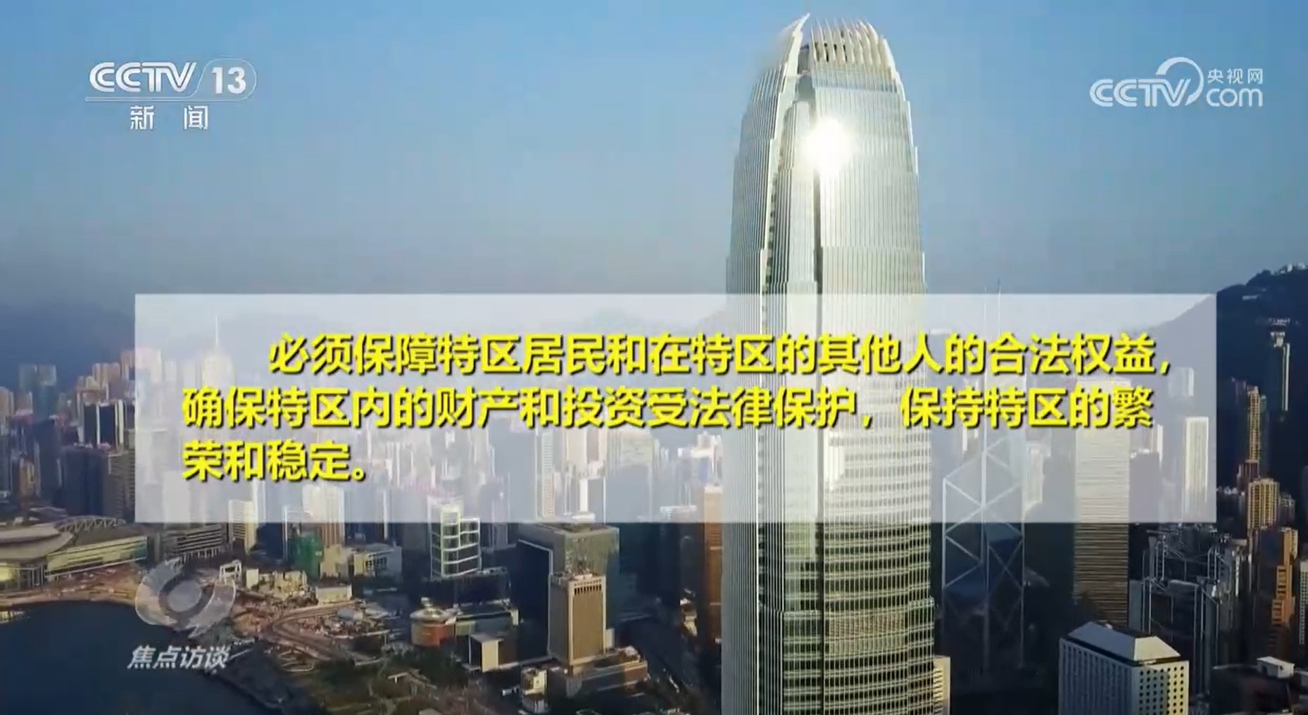 全國政協(xié)港澳臺僑委員會副主任屠海鳴:“香港應該是一個法治城市,香港應該是恢復往日繁榮穩(wěn)定,香港應該更好搭乘中國高速度向前飛馳的列車。在這種狀況下,這次是天時地利人和,所以香港750萬市民都感到由衷興奮、由衷喜悅、由衷高興。”