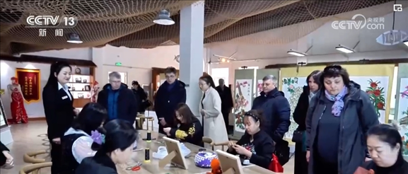 在同江,非物質文化遺產魚皮手工藝品也受到俄羅斯游客的喜愛。赫哲族用魚皮制作的手工藝品精美、大氣、寓意美好,展現了中國少數民族的獨特文化魅力。游客斯維特拉娜當場選購了一幅魚皮畫,準備帶回俄羅斯。