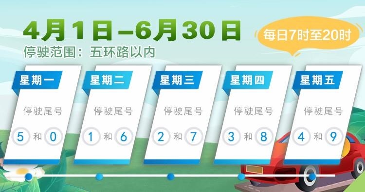 從4月1日開始,工作日小客車限行尾號輪換,周一至周五限行機(jī)動車車牌尾號分別為:5和0、1和6、2和7、3和8、4和9。周五晚高峰適逢尾號4和9限行,尾號輪換后通行壓力將尤為突出,出行前請及時關(guān)注交管部門發(fā)布的實時路況信息,盡量錯峰出行。