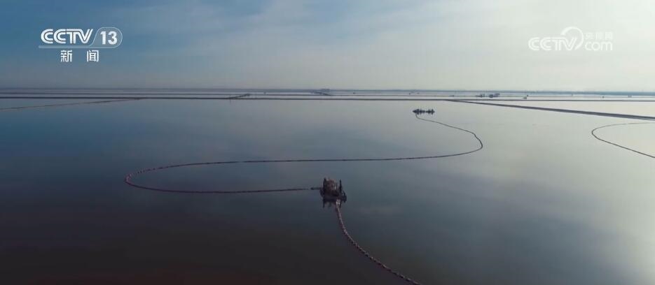從空中俯瞰,一望無垠的鹽池里碧波蕩漾,一艘艘采鹽船在碧綠的湖面上緩緩游動作業(yè)。在當地,含有各種鹽類礦物質的水被稱作“鹵水”?!胞u水”如何轉變成鉀肥?第一步便是采鹽。
