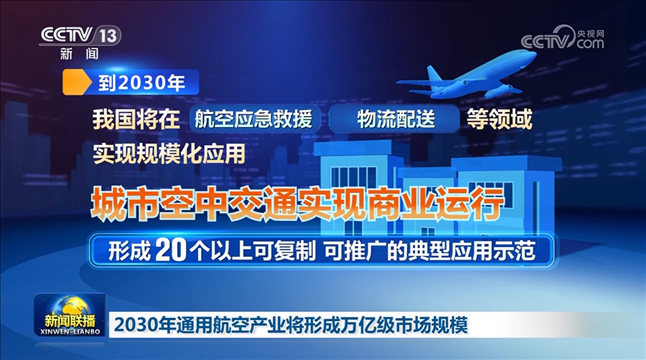 工業(yè)和信息化部表示,到2030年,我國將在航空應(yīng)急救援、物流配送等領(lǐng)域?qū)崿F(xiàn)規(guī)模化應(yīng)用,城市空中交通實現(xiàn)商業(yè)運行,形成20個以上可復(fù)制、可推廣的典型應(yīng)用示范。打造10家以上具有生態(tài)主導(dǎo)力的通用航空產(chǎn)業(yè)鏈龍頭企業(yè)。形成萬億級規(guī)模的通用航空產(chǎn)業(yè)市場。以高端化、智能化、綠色化為特征的通用航空產(chǎn)業(yè)發(fā)展新模式在我國將基本建立。