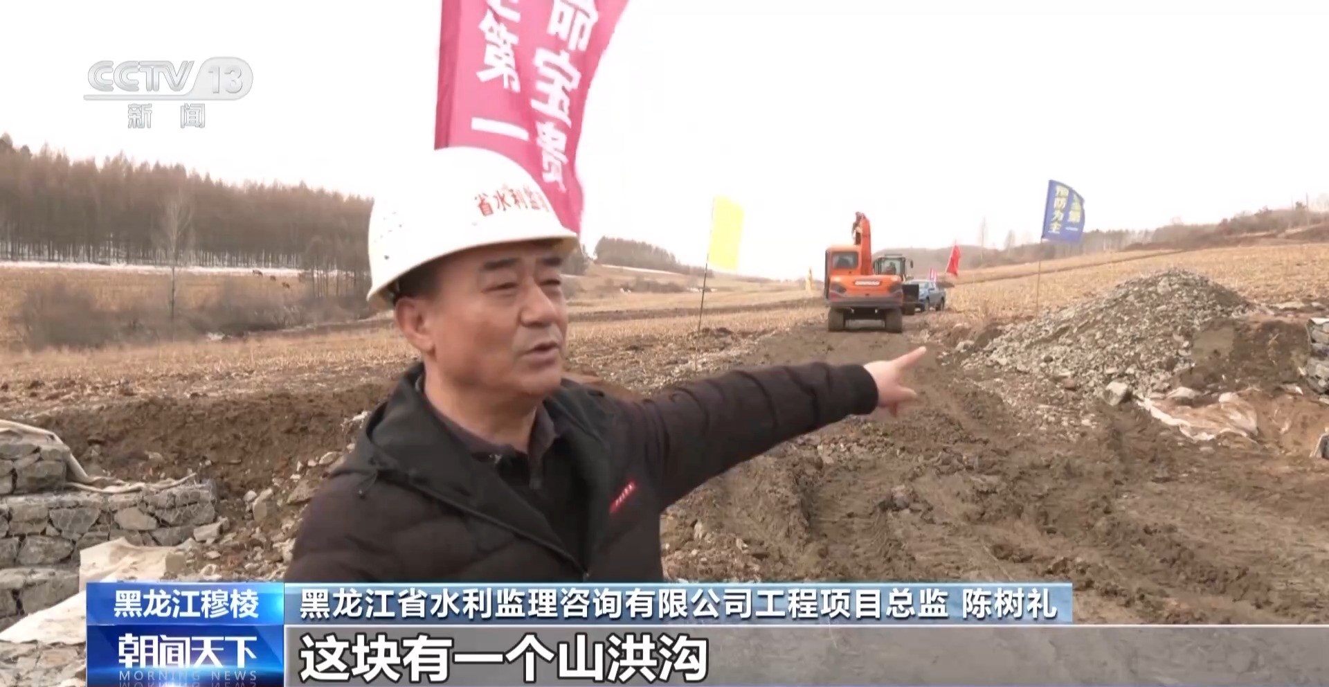 黑龍江省水利監(jiān)理咨詢有限公司工程項(xiàng)目總監(jiān) 陳樹禮:這塊有一個(gè)山洪溝,水土流失非常嚴(yán)重,通過項(xiàng)目把這個(gè)(地方)用石籠進(jìn)行護(hù)砌,保證土地面積不受沖刷。