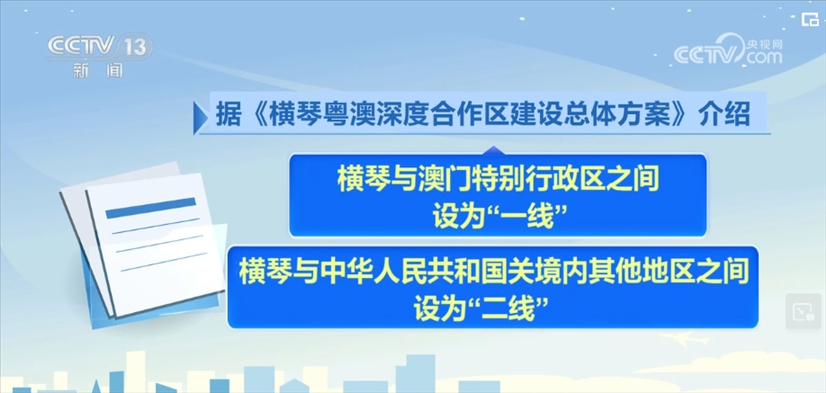 據(jù)《橫琴粵澳深度合作區(qū)建設(shè)總體方案》介紹,珠海橫琴與澳門特別行政區(qū)之間設(shè)為“一線”,橫琴與中華人民共和國關(guān)境內(nèi)其他地區(qū)之間設(shè)為“二線”。