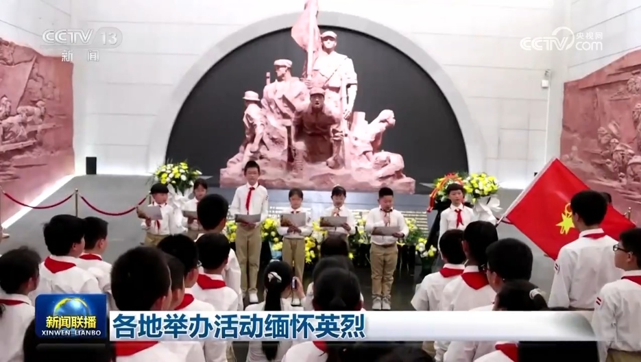 同時(shí),各地還舉行了形式多樣的活動(dòng),傳承紅色基因,弘揚(yáng)革命精神。在吉林通化,人們走進(jìn)東北抗聯(lián)紀(jì)念館,聽講解、看展覽。在江西高安,學(xué)生們走進(jìn)團(tuán)山村,了解當(dāng)年村民與日寇浴血抗?fàn)幍母腥耸论E。在寧夏固原,2000多名師生徒步前往任山河烈士陵園,莊嚴(yán)宣誓,祭奠先烈。