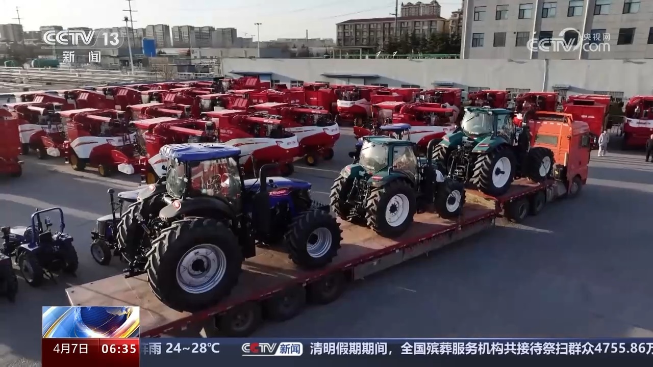 山東濰坊是我國重要的農(nóng)機(jī)產(chǎn)業(yè)基地,記者在當(dāng)?shù)匾患肄r(nóng)機(jī)龍頭生產(chǎn)企業(yè)看到,一臺臺智能化、大馬力農(nóng)機(jī)具,正在裝車轉(zhuǎn)運(yùn)發(fā)往全國各地。