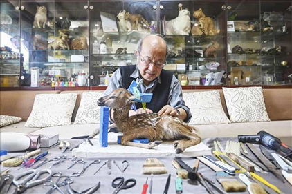 72歲的唐安科,與標(biāo)本打了40多年交道,被很多人稱作“標(biāo)本爺爺”。他的一雙手能“化腐朽為神奇”,讓各種各樣的動(dòng)物“起死回生”、植物“永不凋零”,更展示了生物多樣性之美。