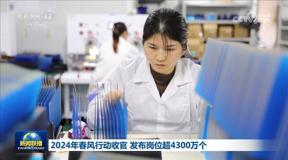 央視網(wǎng)消息(新聞聯(lián)播):記者從人力資源社會保障部了解到,為勞動者和用人單位提供就業(yè)服務(wù)的2024年春風(fēng)行動剛剛結(jié)束,其間,累計舉辦各類招聘活動6.4萬場,發(fā)布崗位4300多萬個。