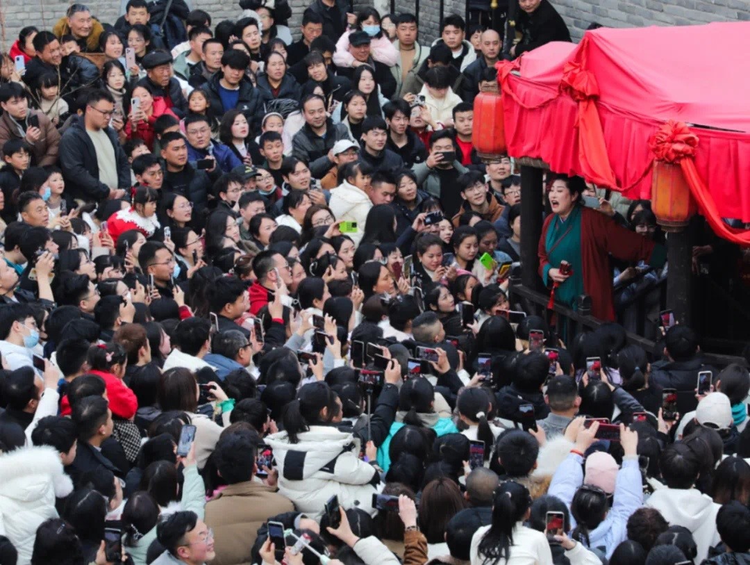 這個春日,午后的萬歲山武俠城景區(qū)水滸街王婆茶館前,熙熙攘攘的人群包圍了舞臺三面,每個能看到臺上的縫隙都被填滿,水泄不通,一旁茶樓二層的好位置已早早被預訂,有人不遠千里只為一睹真容。
