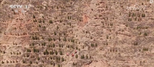 山上土壤條件差,種樹者需要在山體上挖出一道道階梯,樹苗還要帶著營養(yǎng)土運上懸崖,難度可想而知。