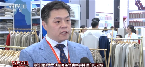 蒙古國駐華大使館商務代表兼參贊圖門巴亞爾表示,消博會給他們提供了一個很好的平臺,他們帶來一些特色產(chǎn)品,天然的羊絨制品、牦牛絨制品等。