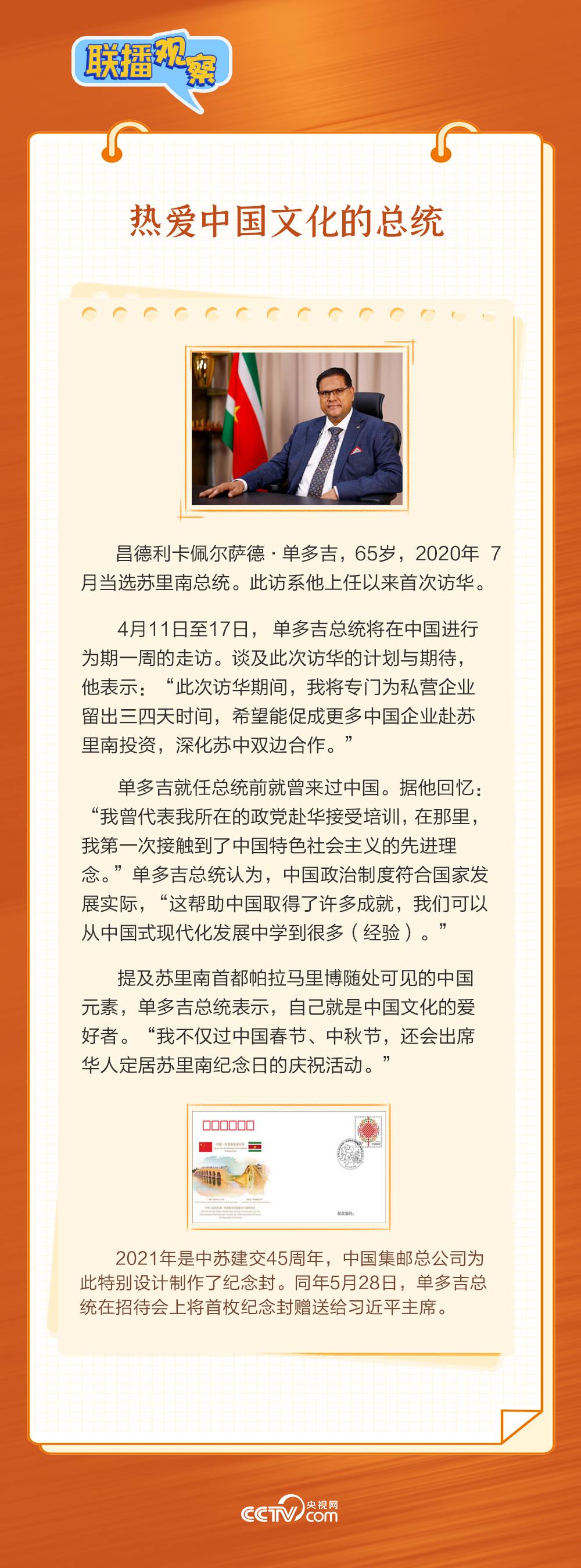 此訪是單多吉總統(tǒng)上任以來首次訪華,這次會談對兩國關(guān)系發(fā)展具有怎樣的重要意義?蘇里南又是怎樣的一個(gè)國度?《聯(lián)播觀察》邀您一同了解。