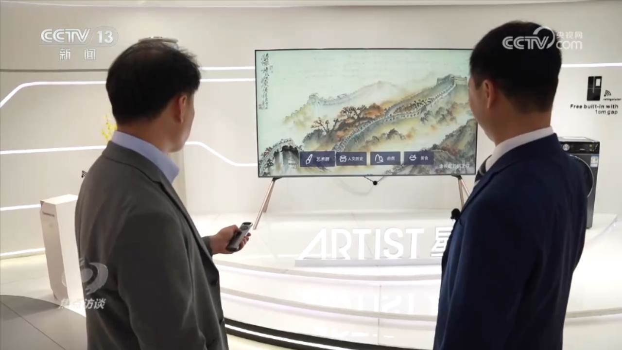 為了實現(xiàn)國際化戰(zhàn)略,長虹在距離廣州一小時車程的中山市專門建立了一個出口基地,用前店后廠的模式加快向海外出口。一走進展廳,記者首先就被這款115寸的巨幅電視吸引。它不僅大,而且聰明,內(nèi)置了人工智能大模型,記者體驗了一下它的AI繪畫功能。
