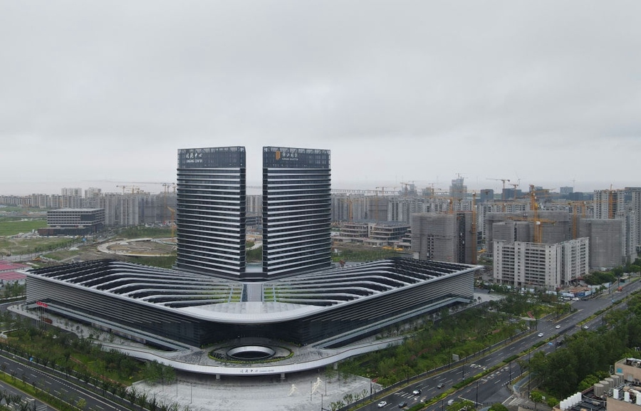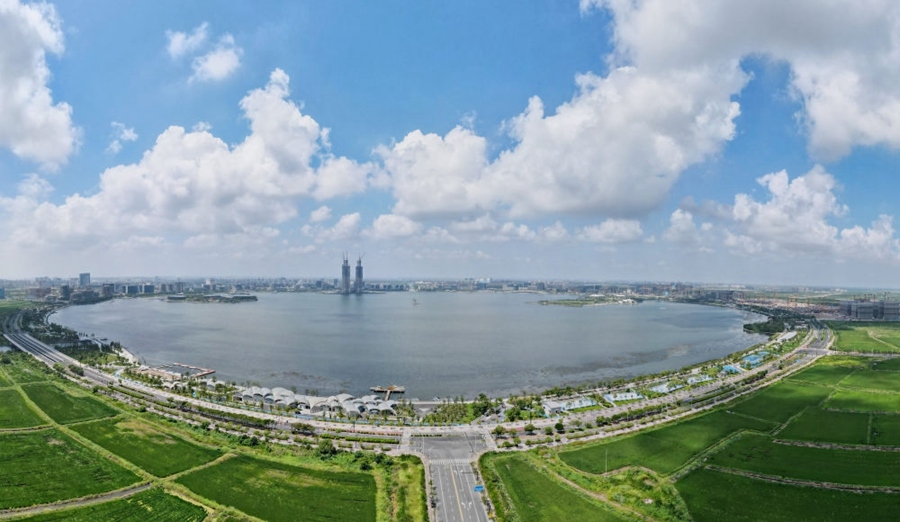 這是中國(guó)(上海)自由貿(mào)易試驗(yàn)區(qū)臨港新片區(qū)滴水湖(無(wú)人機(jī)全景照片,2023年9月6日攝)。