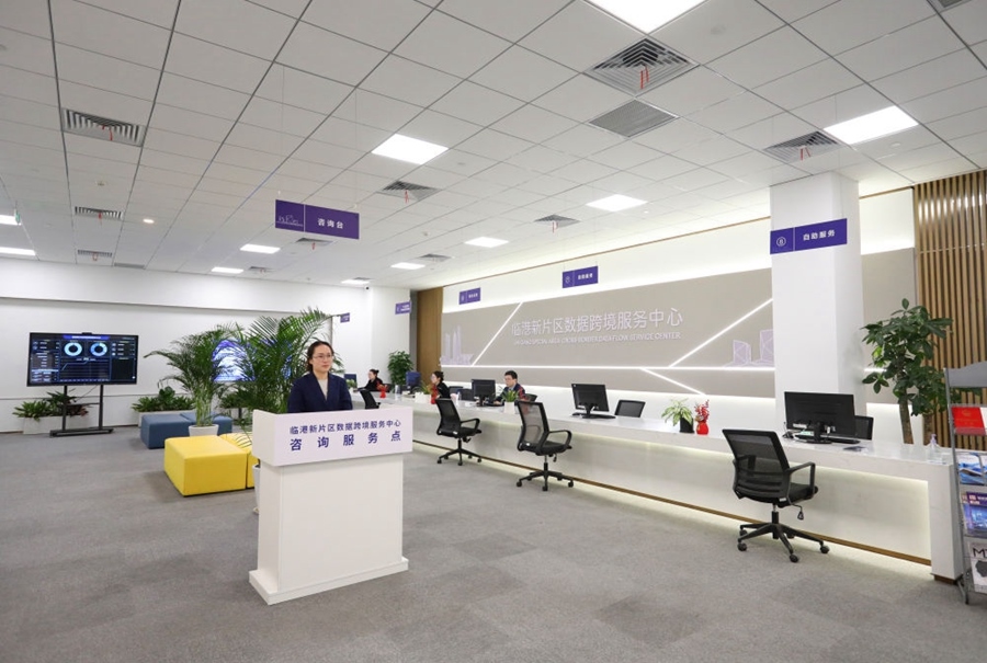 中國(guó)(上海)自由貿(mào)易試驗(yàn)區(qū)臨港新片區(qū)數(shù)據(jù)跨境服務(wù)中心內(nèi)景。該中心4月7日啟用運(yùn)營(yíng),致力于為數(shù)據(jù)處理者提供全方位、全流程數(shù)據(jù)跨境服務(wù),包括材料受理、業(yè)務(wù)咨詢等,在臨港新片區(qū)打造數(shù)據(jù)跨境流動(dòng)的綠色通道(2024年4月9日攝)。