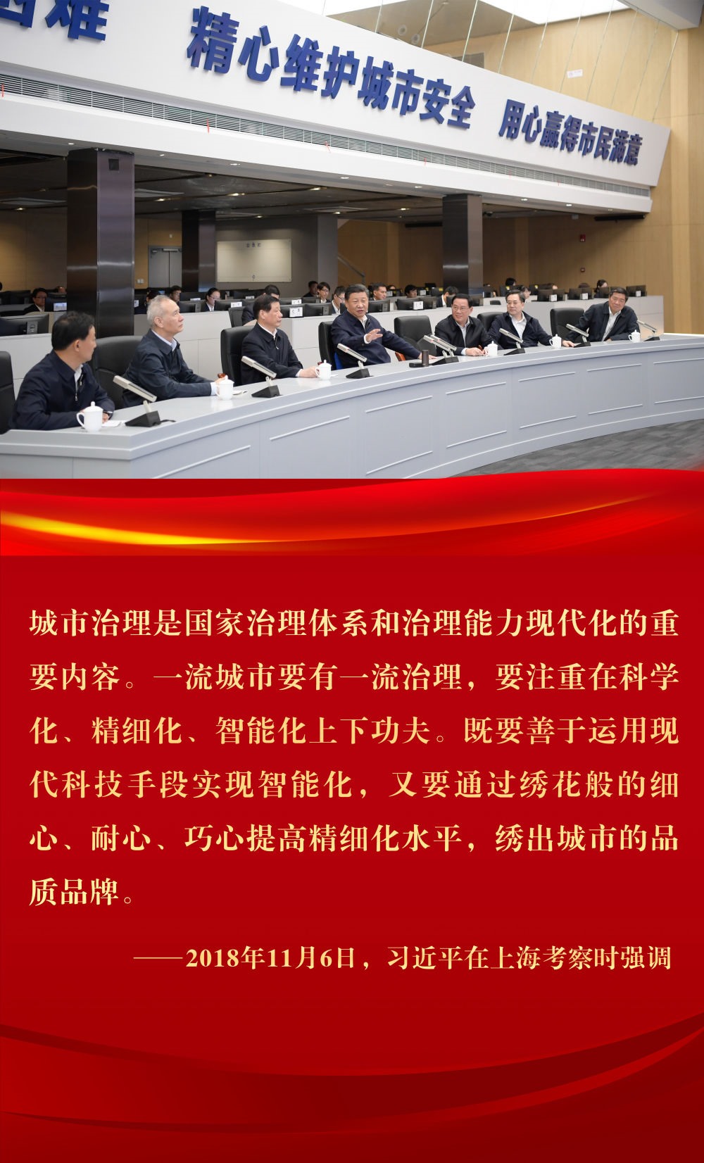 2018年11月6日下午,習(xí)近平在上海浦東新區(qū)城市運(yùn)行綜合管理中心了解上海城市精細(xì)化管理和國(guó)際貿(mào)易單一窗口運(yùn)營(yíng)情況。