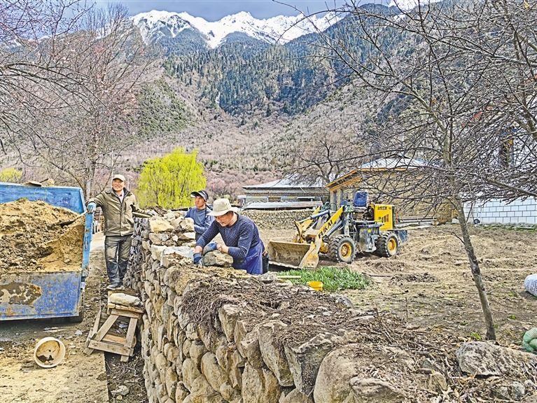 漫步村落,遠(yuǎn)遠(yuǎn)就聽見喧鬧聊天和砌墻的聲音,原來是強巴一家正在給果園砌圍墻?!霸豪锏奶O果樹發(fā)芽了,為了防止牛吃,我們就用石頭將圍墻壘得高一些,杜絕一切影響蘋果收成的因素。”強巴爽朗地笑道,“去年我們家賣蘋果共收入4萬元,一年之計在于春,現(xiàn)在就要做足準(zhǔn)備,今年收成肯定會更好!”閑談間,強巴從家里拿出一籃自家產(chǎn)的蘋果分給大家吃,深紅的蘋果在陽光下閃耀著誘人的光澤,散發(fā)著春天的甜美氣息。