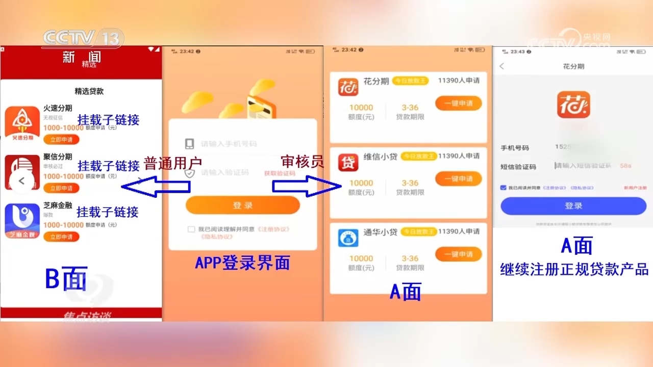 安徽省蕪湖市公安局經(jīng)開區(qū)分局偵查打擊部警務(wù)技術(shù)二級(jí)主管高陽(yáng):“提供審核的都是正規(guī)的貸款產(chǎn)品,點(diǎn)擊以后一步一步看起來(lái)都很正規(guī),這樣審核員就會(huì)通過,覺得這個(gè)APP是正常的,可以在官方應(yīng)用商城上架。但是普通用戶登錄以后,就會(huì)下載新的APP,新的APP都是詐騙APP?!?/p>