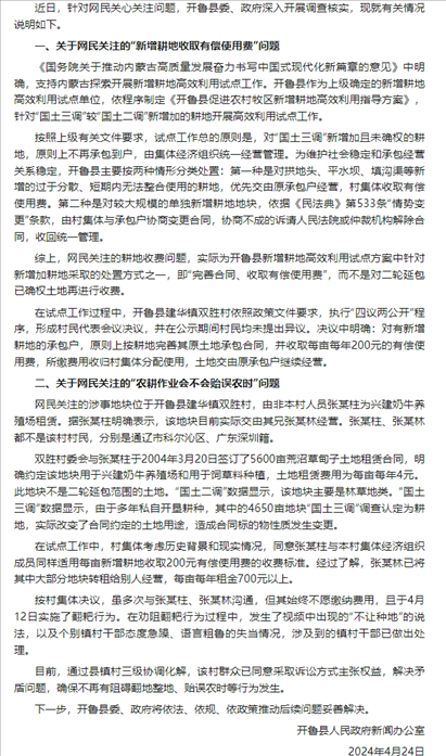·新增耕地收取有償使用費(fèi)?農(nóng)耕作業(yè)會(huì)不會(huì)貽誤農(nóng)時(shí)??jī)?nèi)蒙古開魯縣回應(yīng)。