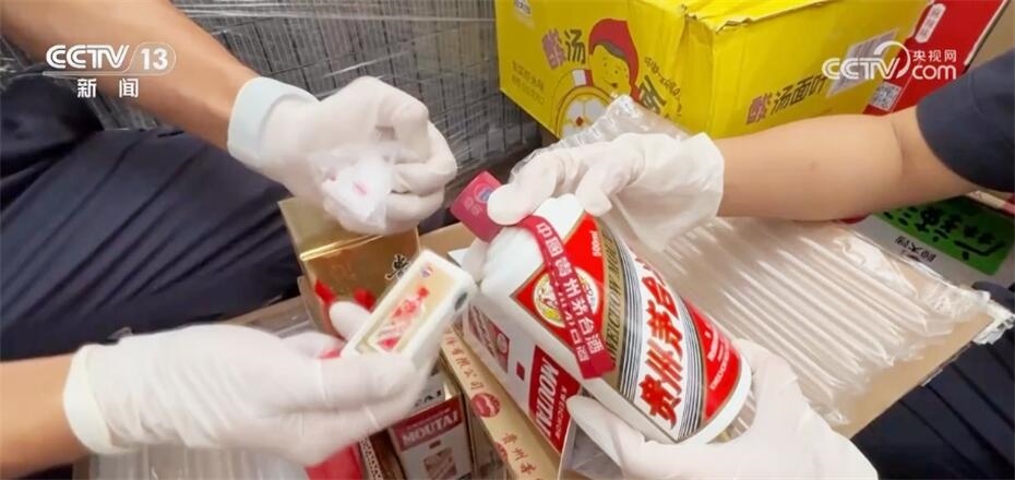 同樣的在云南磨憨公路口岸,海關(guān)關(guān)員對(duì)一申報(bào)為“白酒”的貨物進(jìn)行開箱查驗(yàn),發(fā)現(xiàn)這票印有“貴州茅臺(tái)酒”圖形商標(biāo)的108瓶白酒涉嫌侵犯權(quán)利人在海關(guān)總署備案的知識(shí)產(chǎn)權(quán)。