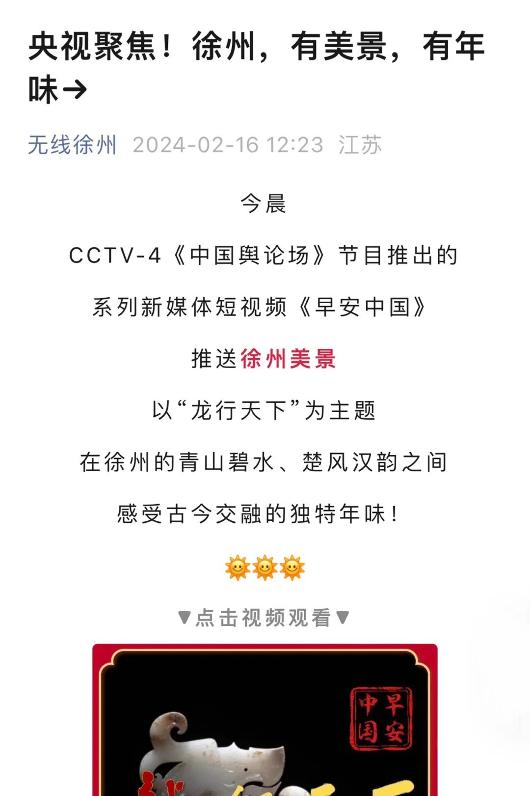 “不知不覺《早安中國(guó)》陪伴我一年了,每天起床打開手機(jī)欣賞這漂亮的小視頻已經(jīng)成為一種習(xí)慣?!?/p>