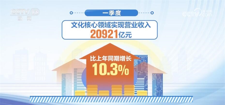 文化領(lǐng)域各行業(yè)大類實(shí)現(xiàn)全面增長,一季度,文化核心領(lǐng)域?qū)崿F(xiàn)營業(yè)收入20921億元,比上年同期增長10.3%。其中,內(nèi)容創(chuàng)作生產(chǎn)、新聞信息服務(wù)、文化娛樂休閑服務(wù)等行業(yè)大類營業(yè)收入增長較快,同比增長均在10%以上。