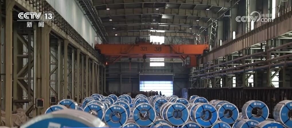 在邯鄲鋼鐵廠的冷軋鋼卷出貨區(qū),記者來到這里采訪時(shí),兩輛大吊車正在忙著將一個個重逾5噸的鋼卷吊裝進(jìn)火車的車廂里。