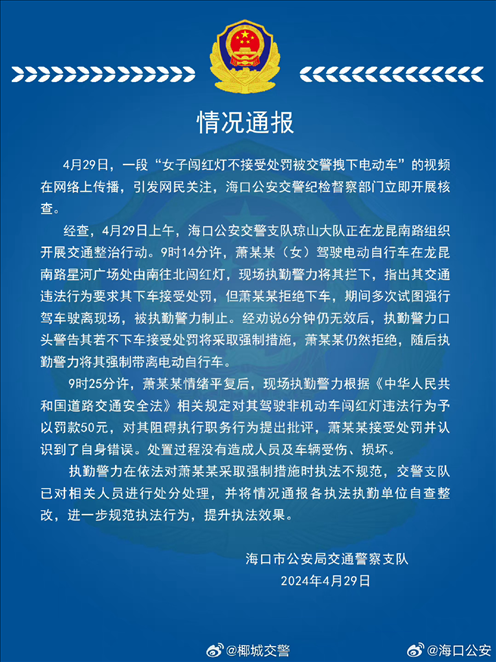·女子闖紅燈不接受處罰被交警拽下車???诮痪▓螅簣?zhí)法不規(guī)范。