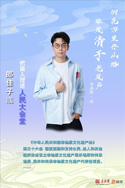 郎佳子彧畢業(yè)于北京大學(xué)藝術(shù)學(xué)院,國家級非遺“北京面人郎”第三代傳承人。他自幼受家庭熏陶,3歲隨父親郎志春學(xué)藝,至今已20多年。他嘗試用老手藝做新題材,同時探索利用短視頻、直播等新媒介展示傳統(tǒng)技藝,讓更多人了解并愛上面塑。