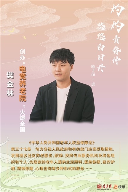 1997年出生的河南小伙樊金林(藝名:林燒)在河南省許昌市經(jīng)營了中國首個“電競養(yǎng)老院”。他把年輕人里流行的電競、蹦迪、桌游等帶進(jìn)養(yǎng)老院,還帶老人們一起拍攝短視頻,通過在社交平臺記錄他們?nèi)粘I畹狞c(diǎn)滴,讓越來越多的人了解到“原來老年生活還可以這樣有趣”。