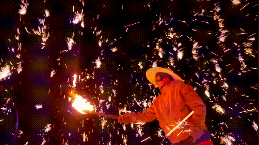 “長城鐵花”是長城腳下的人們在農(nóng)閑時表演來祭祀、娛樂、祈求風(fēng)調(diào)雨順、生活美滿的一種民間文藝活動。當(dāng)鐵水溫度達(dá)到1600至1800攝氏度時,用木勺擊打鐵水,鐵花四濺,猶如天女散花,甚是絢麗壯觀。