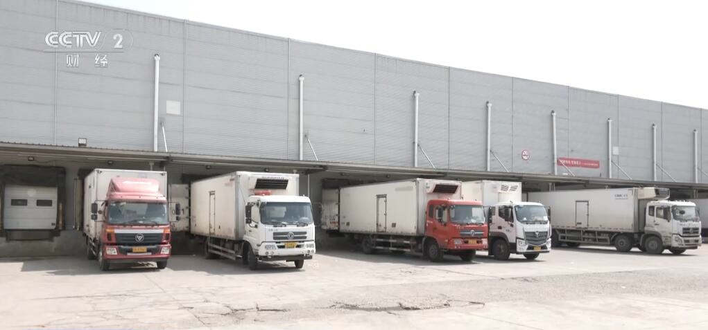 在北京的一個(gè)生鮮冷庫,不少冷鏈運(yùn)輸車正在裝配即將發(fā)往銷售門店的果蔬。由于今年市場(chǎng)對(duì)應(yīng)季果蔬的需求大,加之冷鏈效率提升,這讓冷庫的整體出貨量激增。