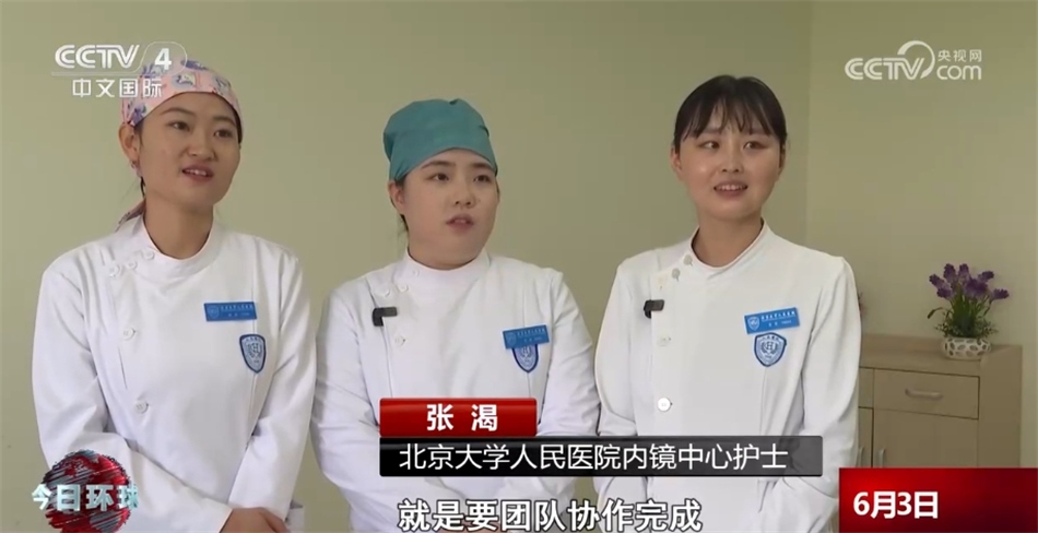 北京大學(xué)人民醫(yī)院內(nèi)鏡中心護士張渴稱:“因為老干這個,知道下一步怎么做,就是要團隊協(xié)作完成?!?/p>