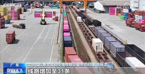 鹽田國際集裝箱碼頭海鐵聯運服務總經理余秋文介紹:“截至今年4月份,我們共開通了14個海鐵聯運內陸港,線路增加至31條,覆蓋了大灣區(qū)、華中、西南等重要的經濟區(qū)域。”