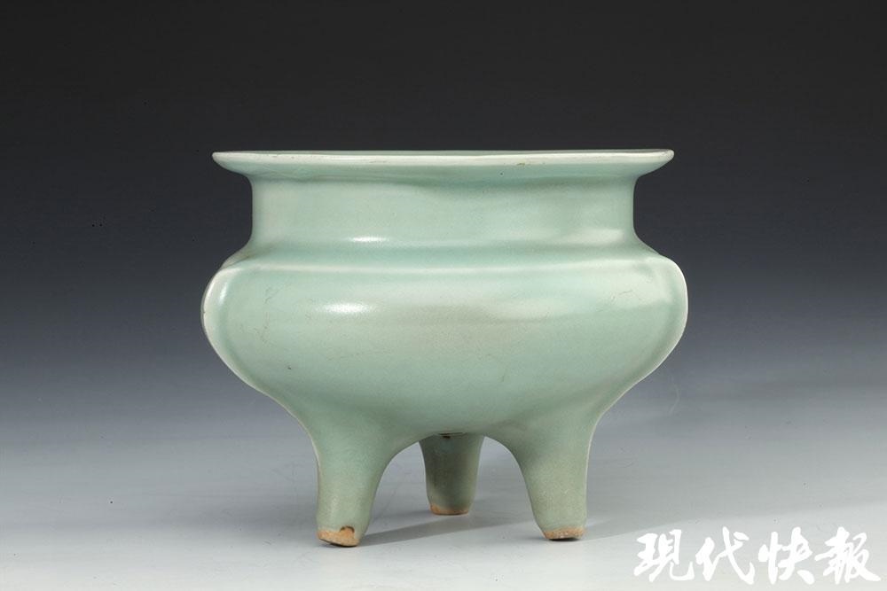 △南宋龍泉窯梅子青釉鬲式爐 無(wú)錫博物院藏