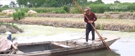 在被劃為全國(guó)重點(diǎn)文物保護(hù)單位的垛田街道楊家蕩村,68歲的韓興和現(xiàn)在是村里少數(shù)會(huì)罱泥的人。罱泥是垛田上獨(dú)有的農(nóng)活兒,農(nóng)民拿著巨大的竹夾從河底夾起淤泥,先倒入船艙內(nèi),再澆到垛田地面上。以前沒(méi)有化肥的年代,罱上來(lái)的河泥就是四里八鄉(xiāng)的農(nóng)戶們都羨慕的好肥料。