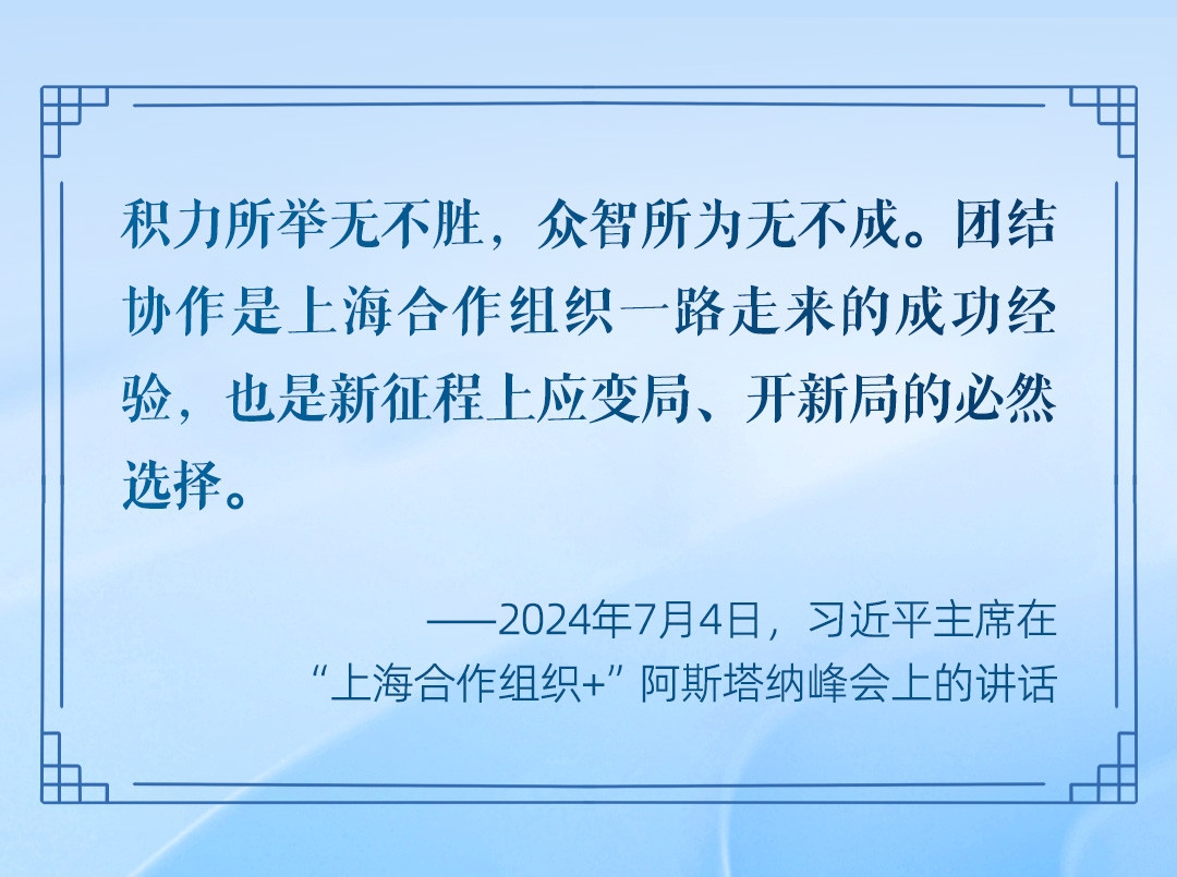 2024年7月2日至6日,習(xí)近平主席出席上海合作組織成員國元首理事會第二十四次會議,并對哈薩克斯坦、塔吉克斯坦進(jìn)行國事訪問。大道不孤,眾行致遠(yuǎn)。上海合作組織成立23年來,從剛開始的6個成員國發(fā)展到如今擁有成員國、觀察員國、對話伙伴國共計(jì)26個國家的大家庭。這些跨越山海的好朋友、好伙伴,在政治、經(jīng)濟(jì)、安全、文化、教育等各領(lǐng)域,實(shí)現(xiàn)互信、互利、平等的“多向奔赴”。