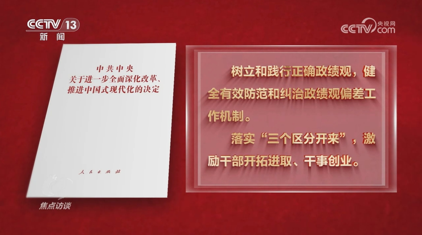 面對(duì)艱巨繁重的改革發(fā)展穩(wěn)定任務(wù),如何保證黨員干部的政績(jī)觀不出現(xiàn)偏差?如何更好地激發(fā)干部隊(duì)伍的積極性、創(chuàng)造性呢?《決定》提出,樹(shù)立和踐行正確政績(jī)觀,健全有效防范和糾治政績(jī)觀偏差工作機(jī)制。落實(shí)“三個(gè)區(qū)分開(kāi)來(lái)”,激勵(lì)干部開(kāi)拓進(jìn)取、干事創(chuàng)業(yè)。