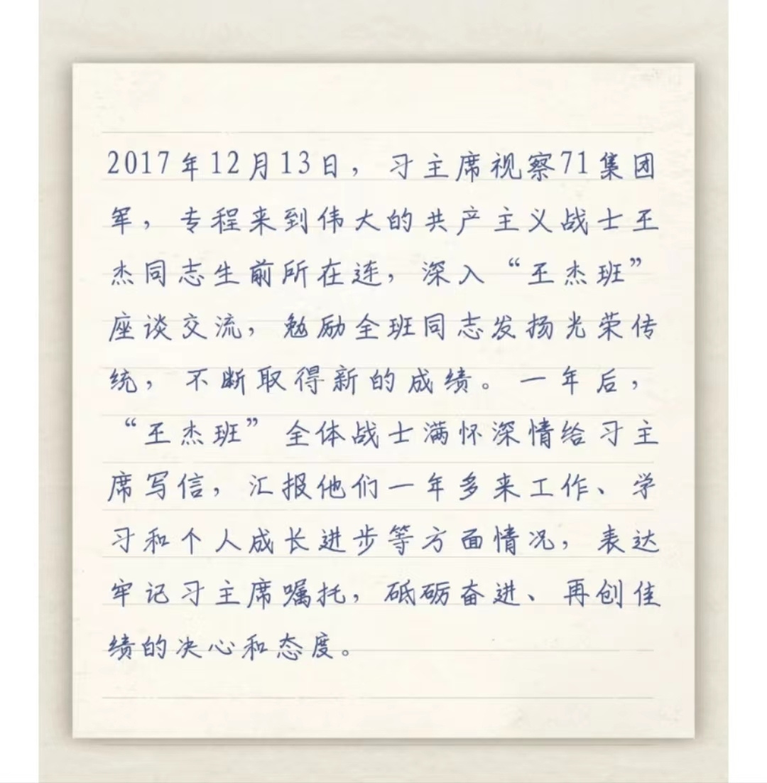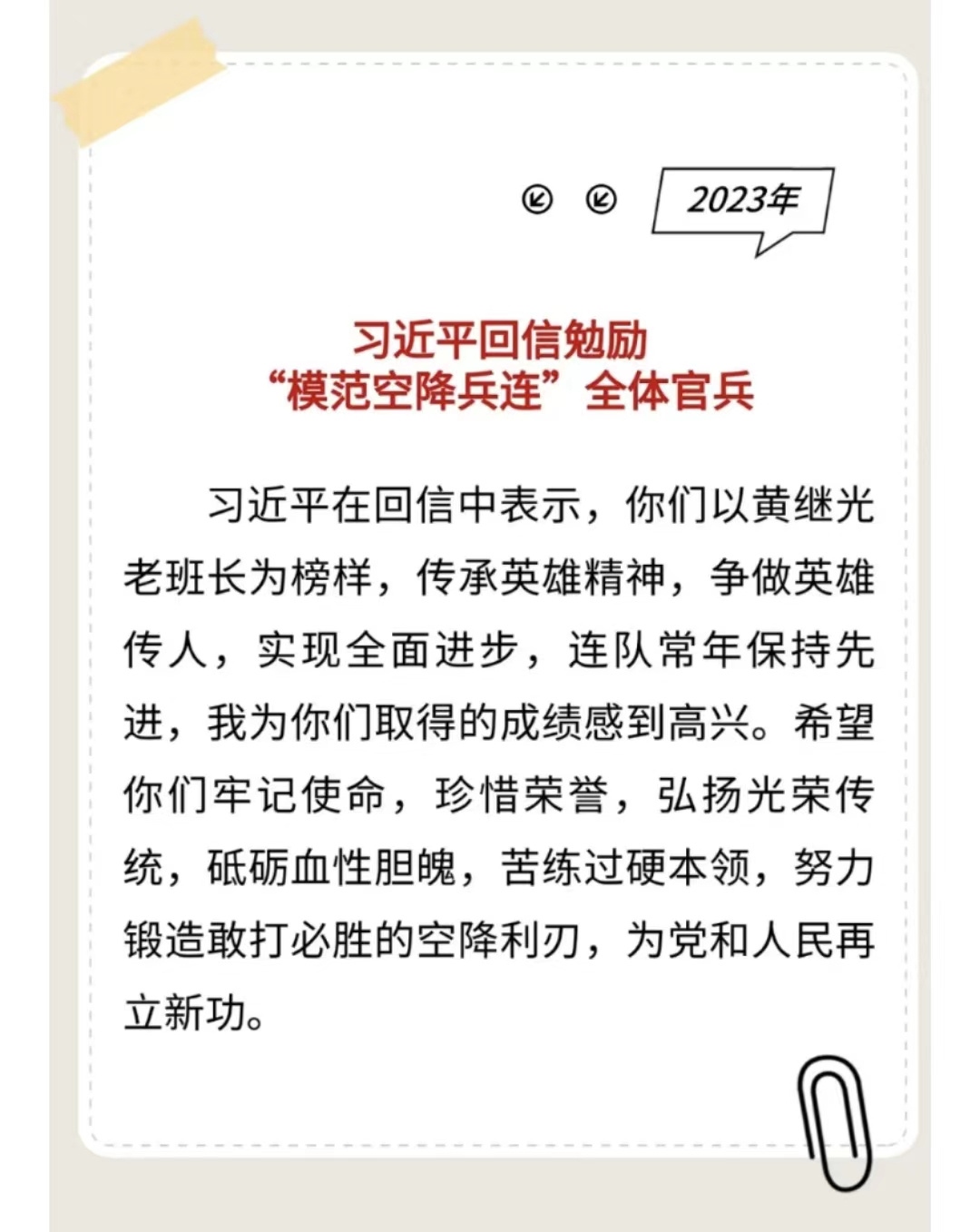 習(xí)主席給“強軍精武紅四連”全體官兵回信