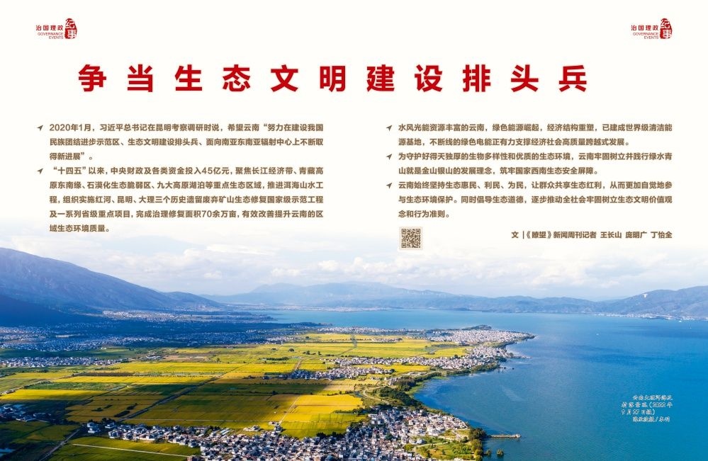 放眼云嶺大地,云南已累計完成生態(tài)文明體制改革事項170余項,形成生態(tài)文明制度建設(shè)的“四梁八柱”,基本構(gòu)建起生態(tài)文明建設(shè)總體制度。云南正馳而不息加強生態(tài)環(huán)境保護(hù),以時不我待的緊迫感和責(zé)任感,推動在綠色低碳循環(huán)發(fā)展、生態(tài)安全體系、生態(tài)文化體系方面取得更大進(jìn)展、更大突破。