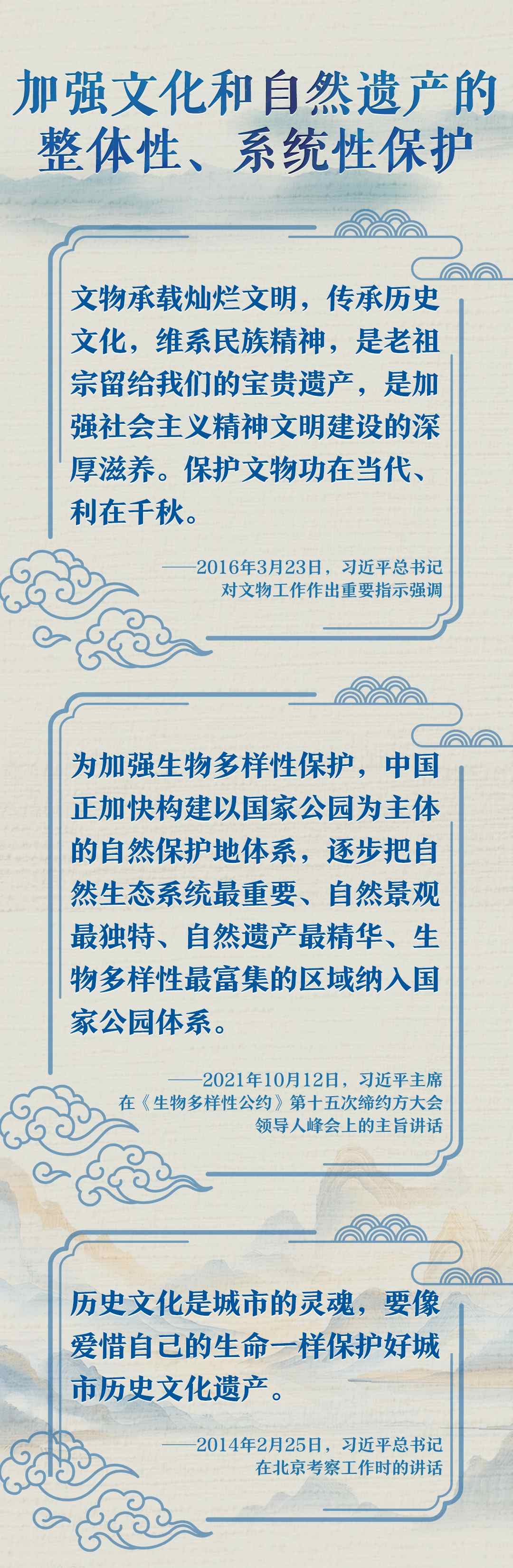 文化遺產(chǎn)體現(xiàn)了中華民族旺盛的生命力和創(chuàng)造力,自然遺產(chǎn)昭示了神奇的自然造化同中華民族的和諧依存關(guān)系。習(xí)近平總書記一直以來(lái)高度重視文化和自然遺產(chǎn)保護(hù)傳承利用工作,近日專門就此作出重要指示強(qiáng)調(diào),守護(hù)好中華民族的文化瑰寶和自然珍寶,讓文化和自然遺產(chǎn)在新時(shí)代煥發(fā)新活力綻放新光彩。讓我們一同學(xué)習(xí)。