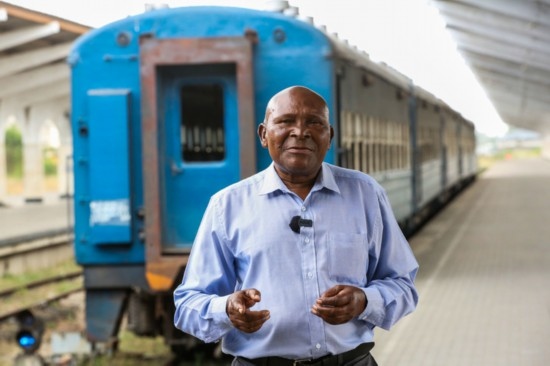 坦贊鐵路退休列車司機恩貢亞尼在達累斯薩拉姆站。