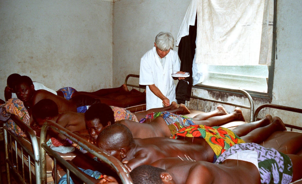 1995年,中國醫(yī)生在多哥卡拉地區(qū)醫(yī)院門診部為患者進行針灸治療。