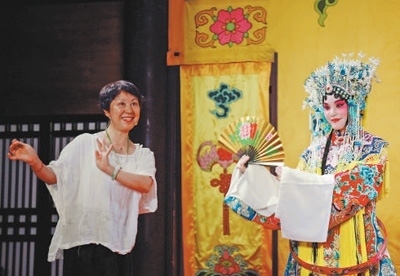 江蘇南通伶工學(xué)社內(nèi),外國學(xué)生身著戲服學(xué)習(xí)京劇。馮凱敏攝(影像中國)