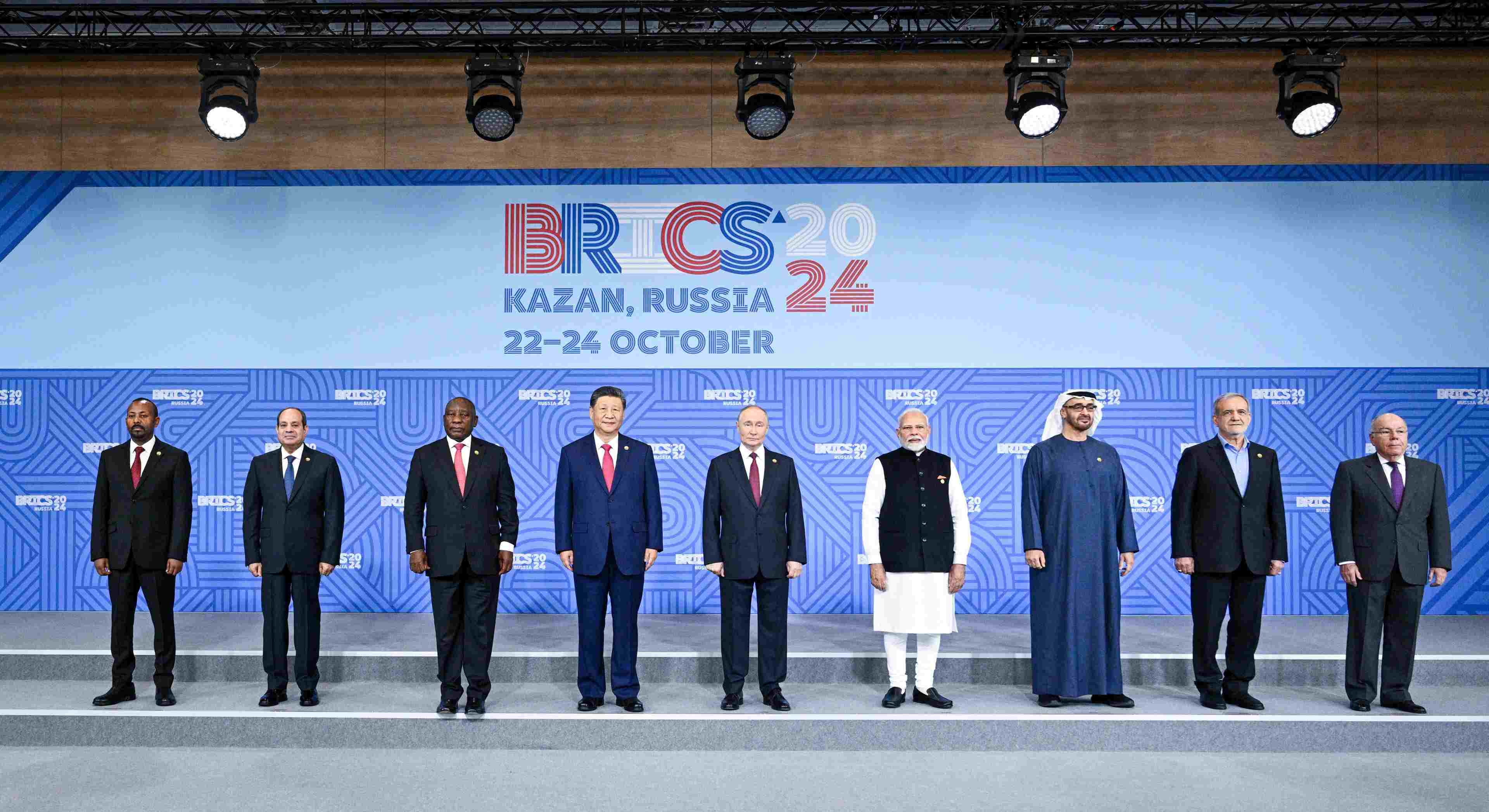 △當?shù)貢r間2024年10月24日上午,國家主席習(xí)近平在喀山會展中心出席金磚成員國、嘉賓國領(lǐng)導(dǎo)人和國際組織負責(zé)人集體合影。